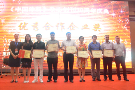 2016年8月23日晚,《中國涂料》雜志創刊30周年紀念活動在青島隆重舉行。為了鼓勵先進,弘揚正能量,在《中國涂料》雜志創刊30周年之際,中國涂料工業協會特別對30年來在《中國涂料》發展中做出突出貢獻的個人和單位給予表彰。